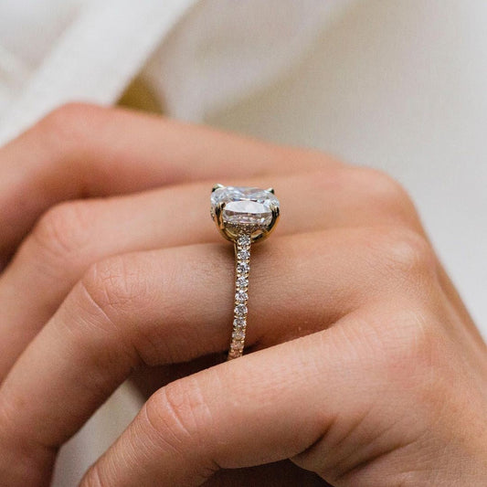 2 CT Cushion Pave & Split Shank Lab Grown Diamond Engagement Ring