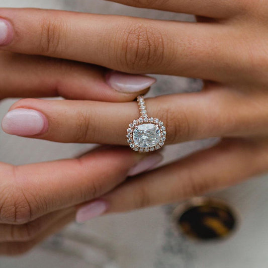 2.3 CT Cushion Halo & Pave Lab Grown Diamond Engagement Ring